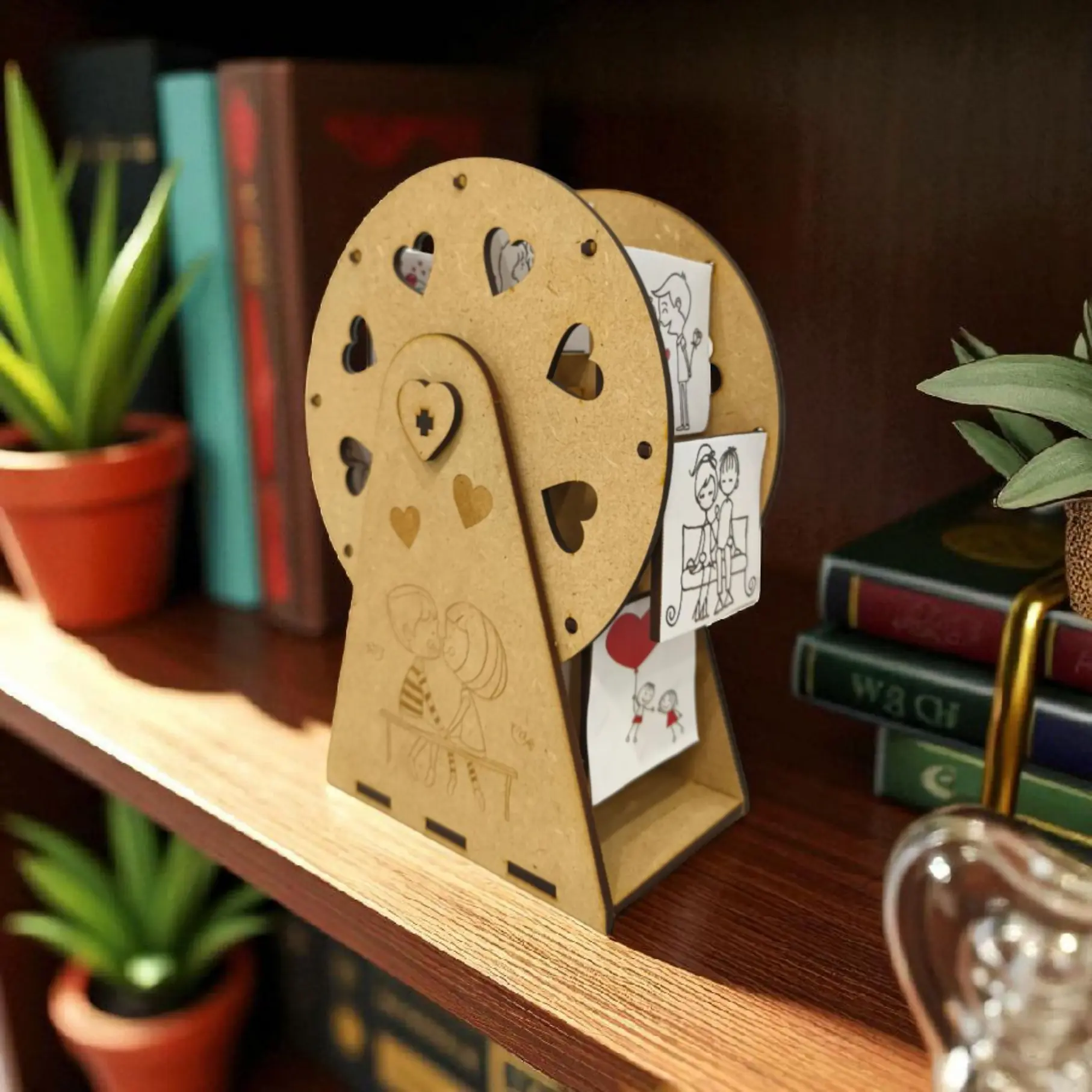 Convierte tus momentos más especiales en un detalle único con esta noria personalizada para fotos, diseñada para colocar hasta 8 imágenes y hacerlas girar día a día. Ideal para sorprender en San Valentín, aniversarios, cumpleaños o para llenar de recuerdos familiares cualquier rincón del hogar.